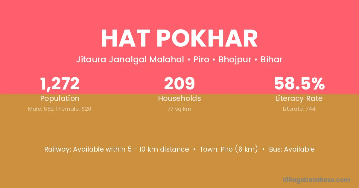 Piro (6 km) is the nearest town to Hat Pokhar village for major economic activities and is located approximately 6 km away.