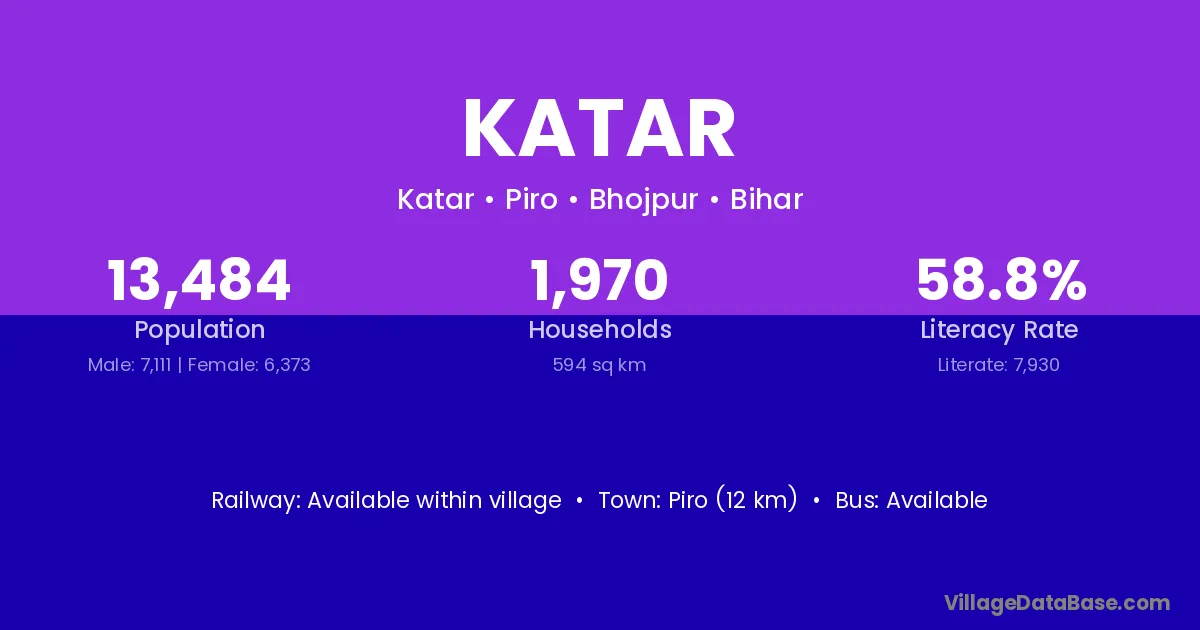 Katar village has a total population of 13,484 people, of which 7,111 are males and 6,373 are females.