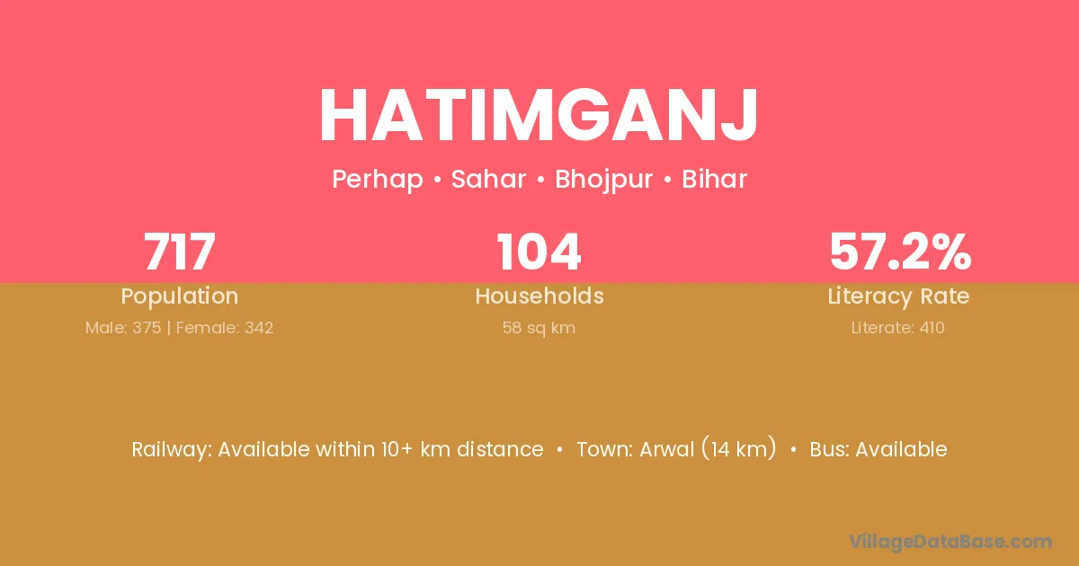 Arwal (14 km) is the nearest town to Hatimganj village for major economic activities and is located approximately 14 km away.