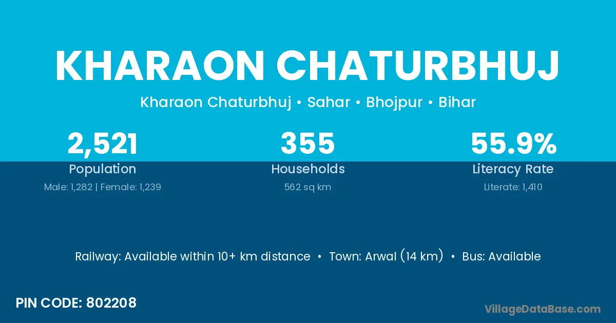 Arwal (14 km) is the nearest town to Kharaon Chaturbhuj village for major economic activities and is located approximately 14 km away.