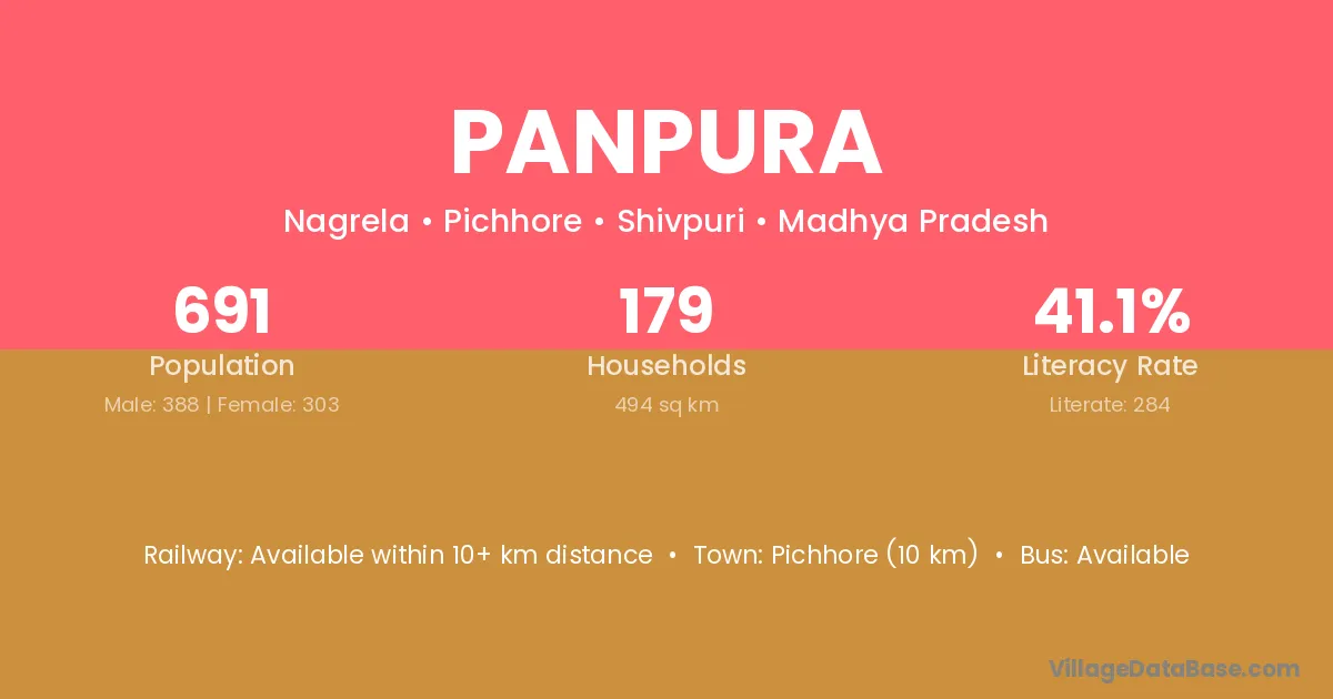 Panpura village has a total population of 483 people, of which 255 are males and 228 are females.