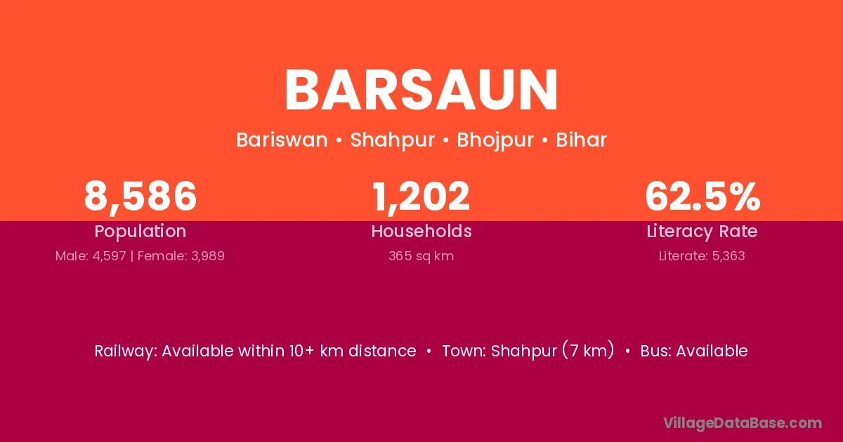 Shahpur (7 km) is the nearest town to Barsaun village for major economic activities and is located approximately 7 km away.