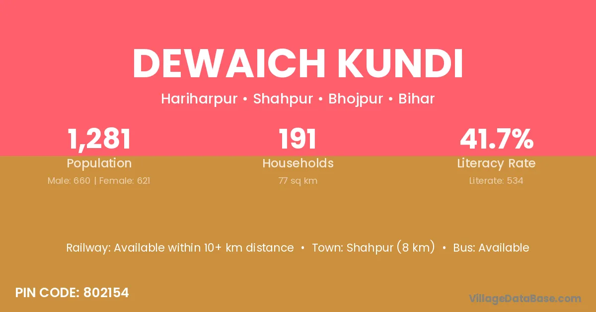 Dewaich Kundi village has a total population of 1,281 people, of which 660 are males and 621 are females.