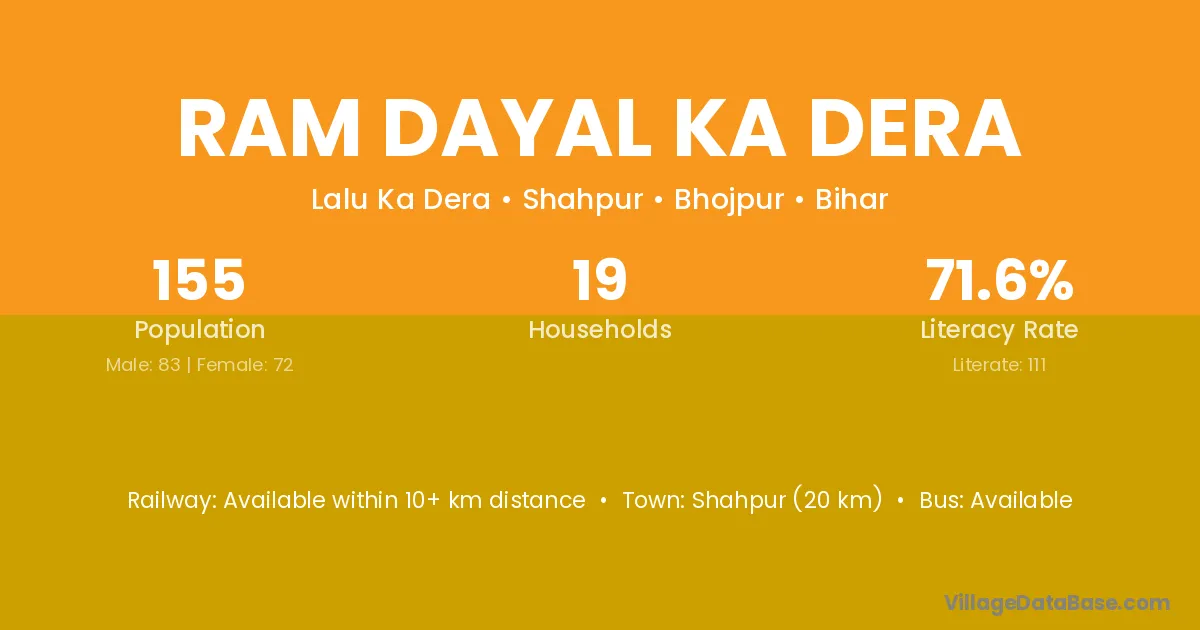 Ram Dayal Ka Dera village has a total population of 155 people, of which 83 are males and 72 are females.
