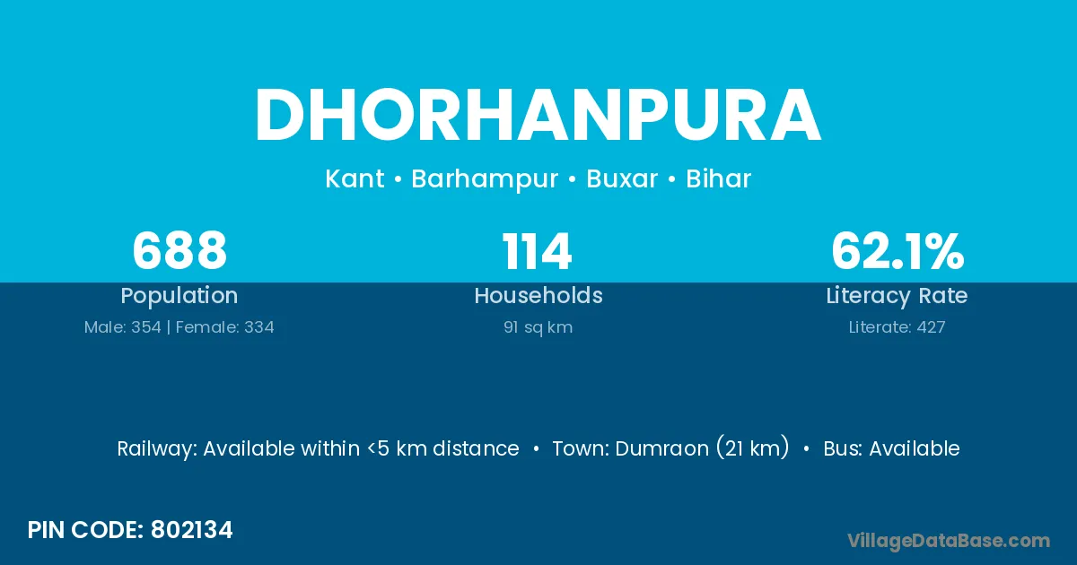 Dumraon (21 km) is the nearest town to Dhorhanpura village for major economic activities and is located approximately 21 km away.
