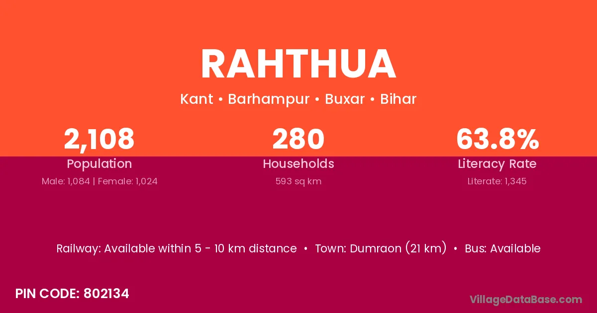 Dumraon (21 km) is the nearest town to Rahthua village for major economic activities and is located approximately 21 km away.