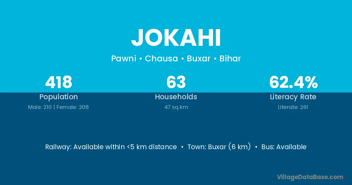 Buxar (6 km) is the nearest town to Jokahi village for major economic activities and is located approximately 6 km away.
