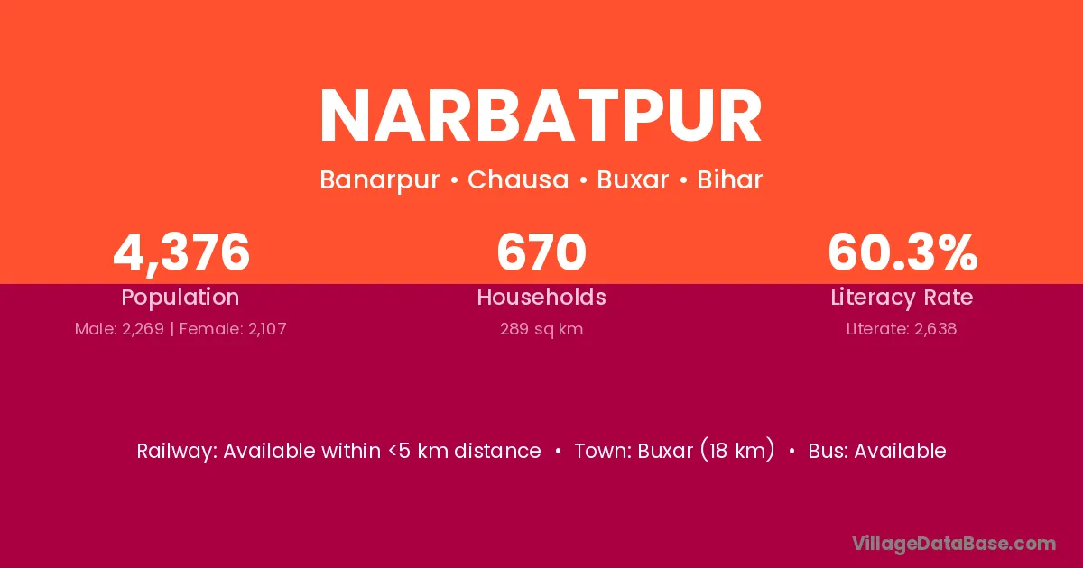 Buxar (18 km) is the nearest town to Narbatpur village for major economic activities and is located approximately 18 km away.