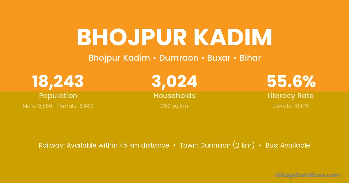 Dumraon (2 km) is the nearest town to Bhojpur Kadim village for major economic activities and is located approximately 2 km away.
