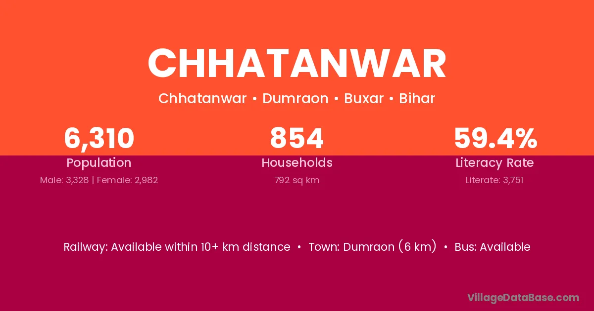 Dumraon (6 km) is the nearest town to Chhatanwar village for major economic activities and is located approximately 6 km away.