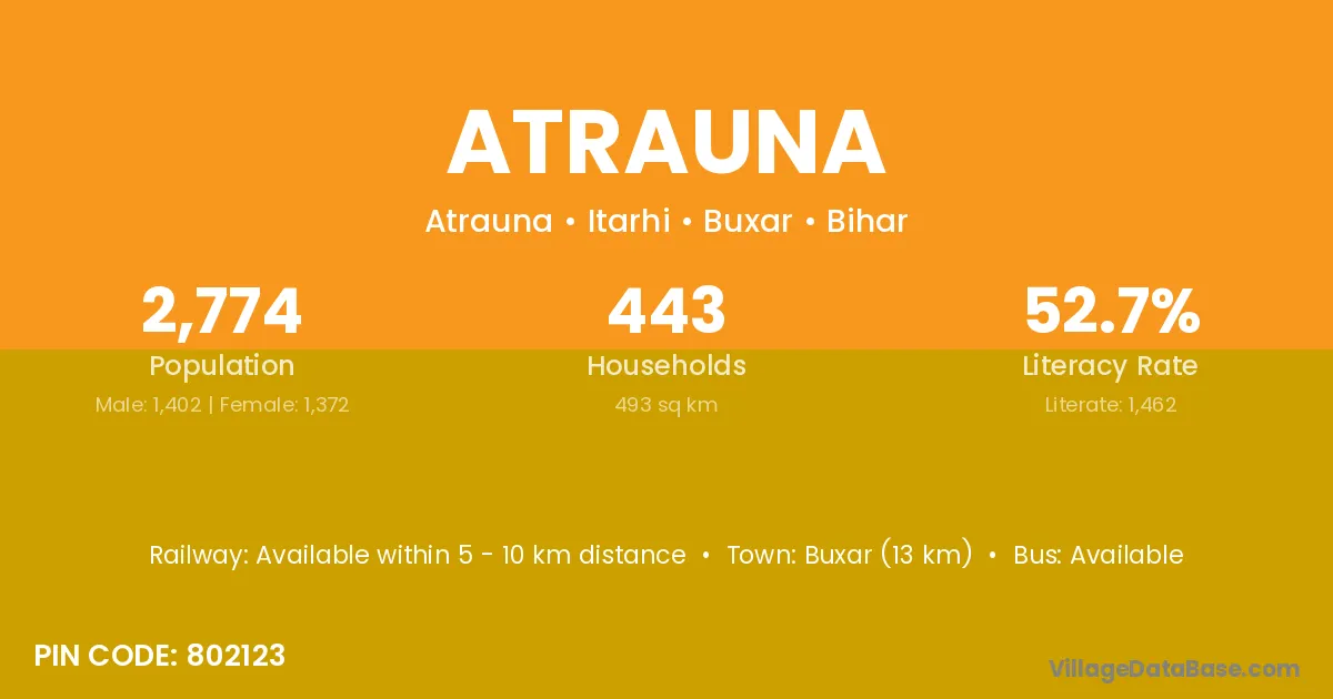 Buxar (13 km) is the nearest town to Atrauna village for major economic activities and is located approximately 13 km away.