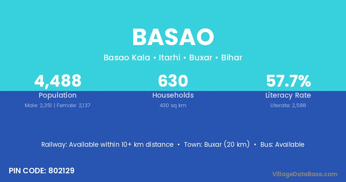 Buxar (20 km) is the nearest town to Basao village for major economic activities and is located approximately 20 km away.