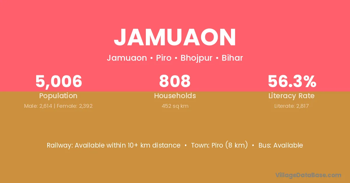 Buxar (18 km) is the nearest town to Jamuaon village for major economic activities and is located approximately 18 km away.