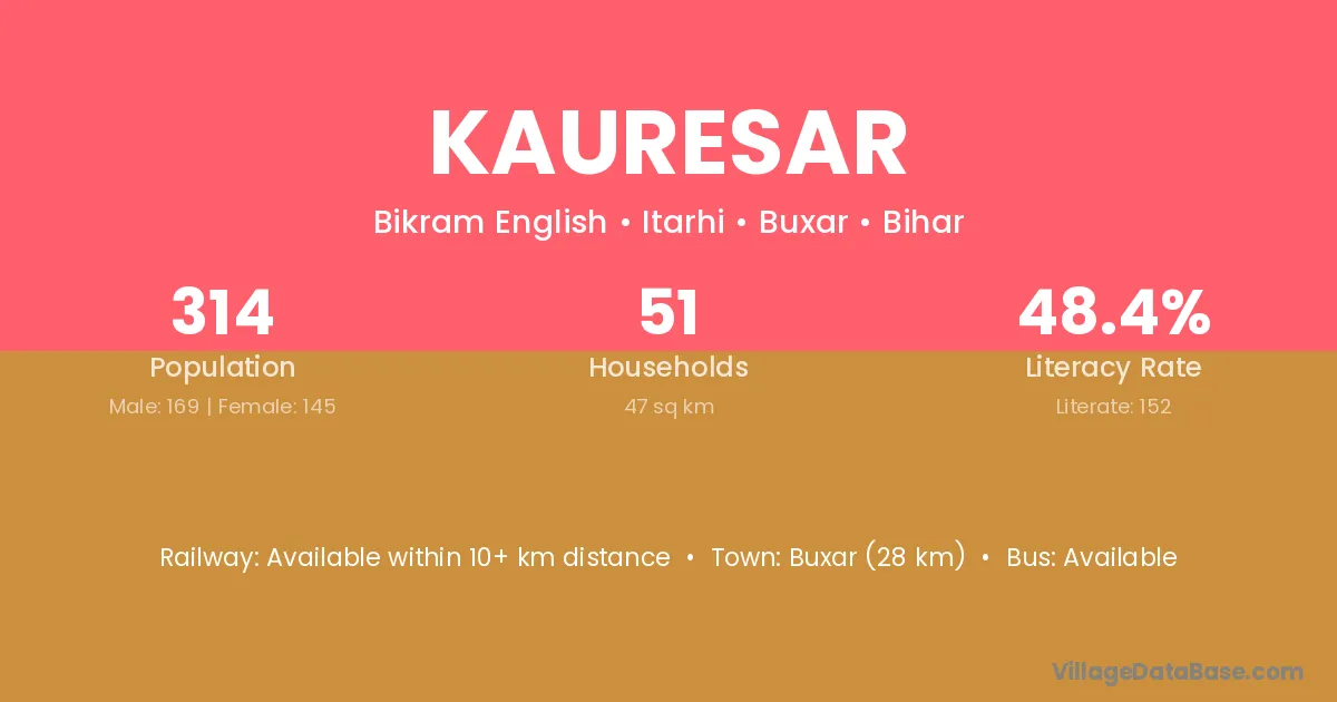Buxar (28 km) is the nearest town to Kauresar village for major economic activities and is located approximately 28 km away.