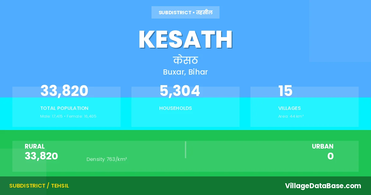 Kesath is a town and Subdivision in the Buxar district of the Bihar. In India, a Subdivision is a subdivision of a district responsible for the administration and revenue collection of a specific area within the district. Subdivisions play a crucial role in the local governance structure, contributing significantly to the development and administration of their communities.