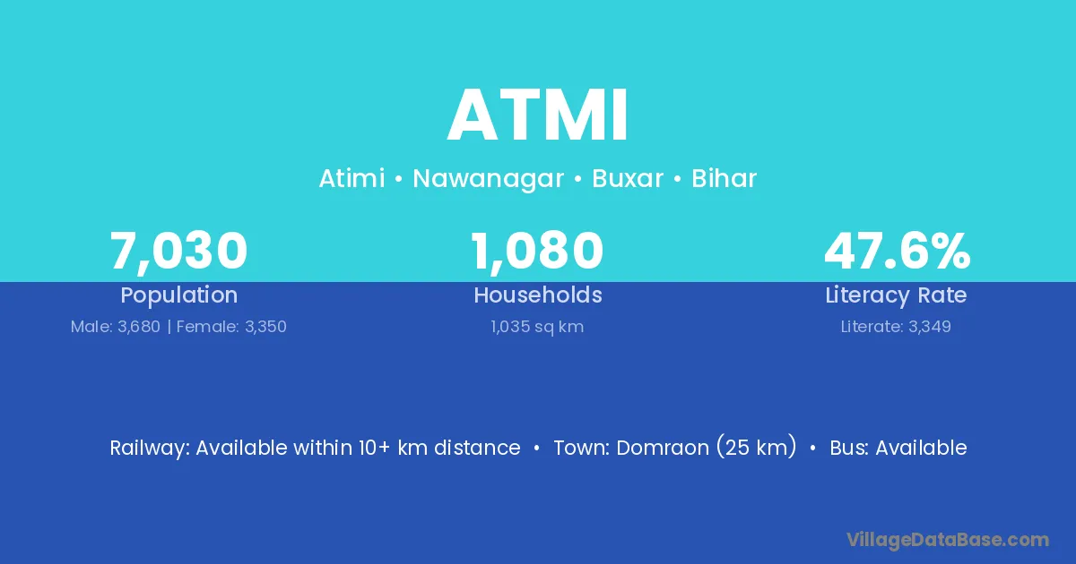 Domraon (25 km) is the nearest town to Atmi village for major economic activities and is located approximately 25 km away.
