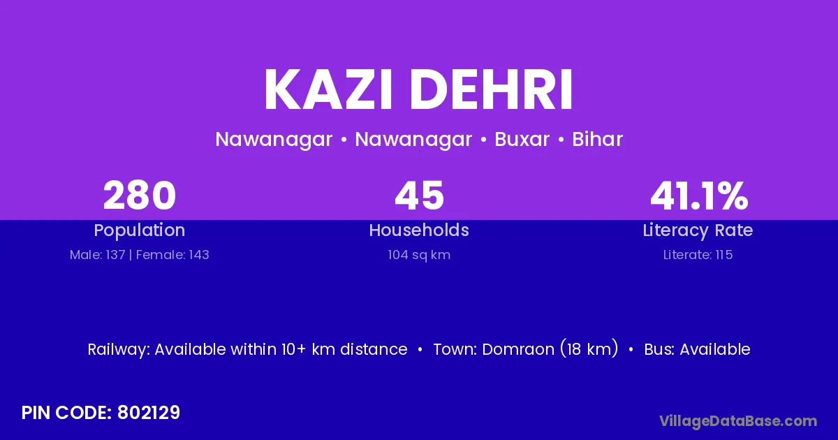 Domraon (18 km) is the nearest town to Kazi Dehri village for major economic activities and is located approximately 18 km away.