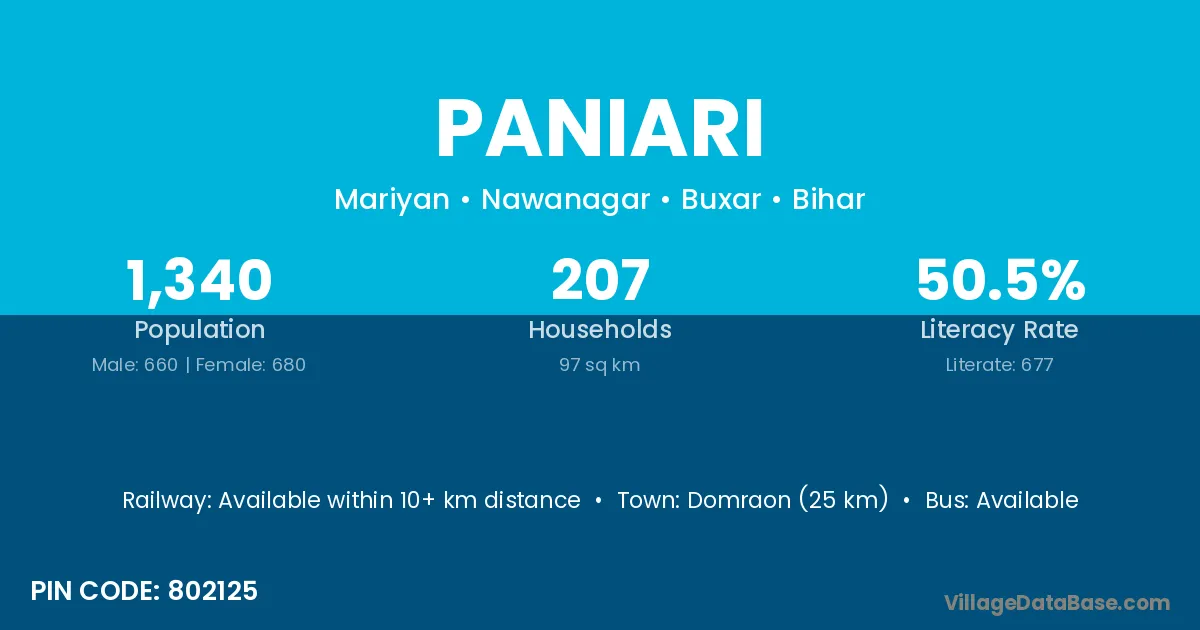 Domraon (25 km) is the nearest town to Paniari village for major economic activities and is located approximately 25 km away.