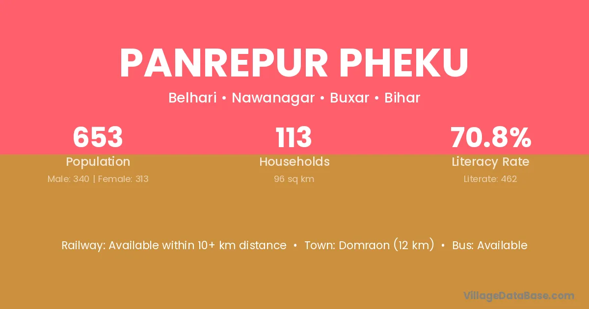 Domraon (12 km) is the nearest town to Panrepur Pheku village for major economic activities and is located approximately 12 km away.