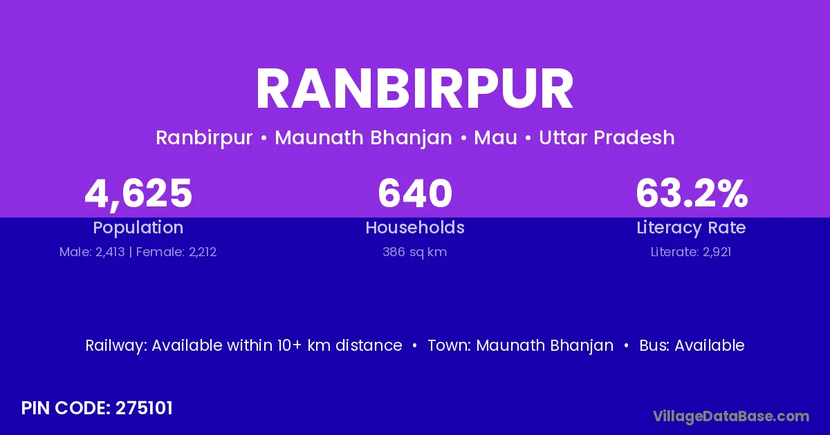 Domraon (19 km) is the nearest town to Ranbirpur village for major economic activities and is located approximately 19 km away.