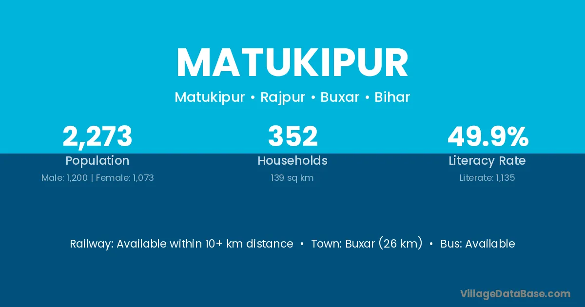 Buxar (26 km) is the nearest town to Matukipur village for major economic activities and is located approximately 26 km away.
