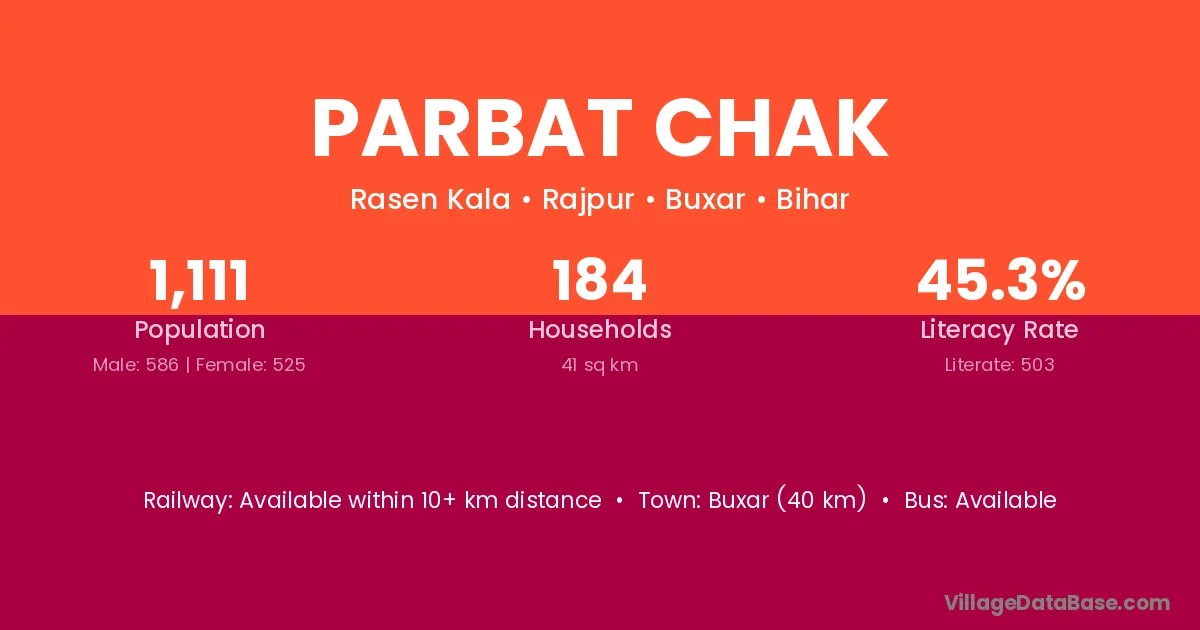 Buxar (40 km) is the nearest town to Parbat Chak village for major economic activities and is located approximately 40 km away.
