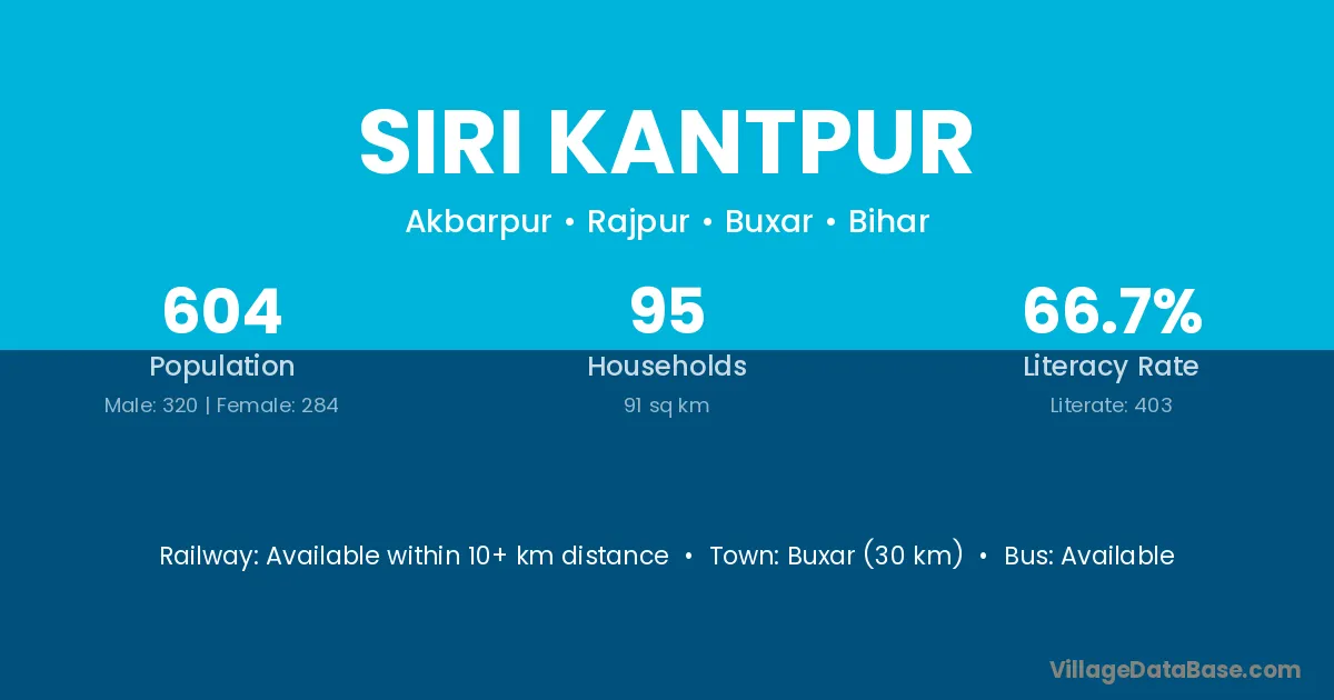 Buxar (30 km) is the nearest town to Siri Kantpur village for major economic activities and is located approximately 30 km away.