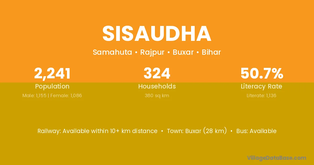 Buxar (28 km) is the nearest town to Sisaudha village for major economic activities and is located approximately 28 km away.