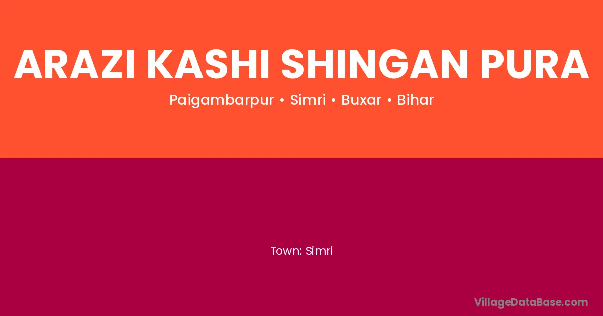 Arazi Kashi Shingan Pura village is located in the Simri Subdivision of the Buxar district in Bihar .