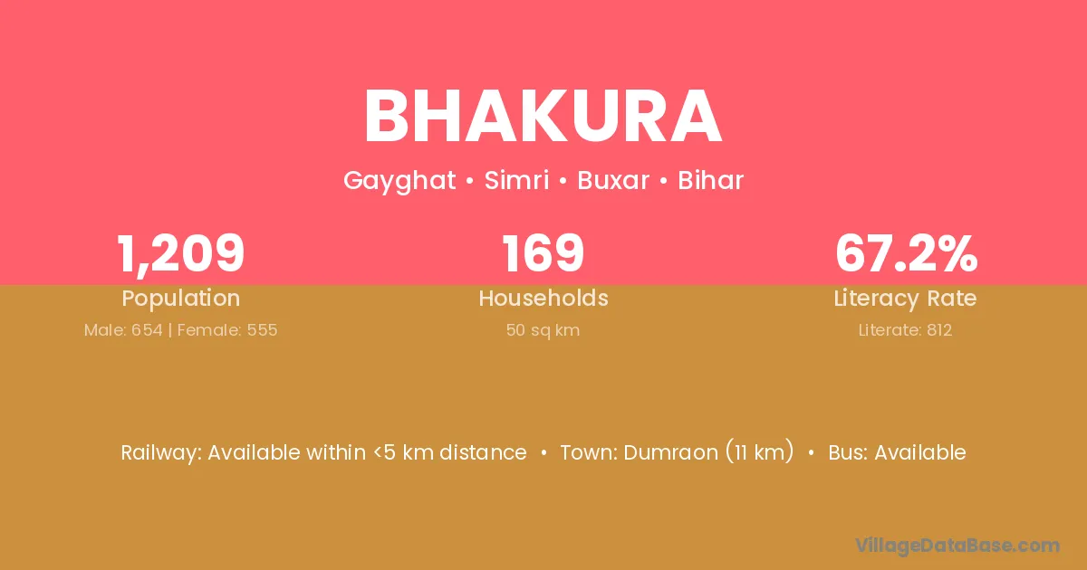 Dumraon (11 km) is the nearest town to Bhakura village for major economic activities and is located approximately 11 km away.