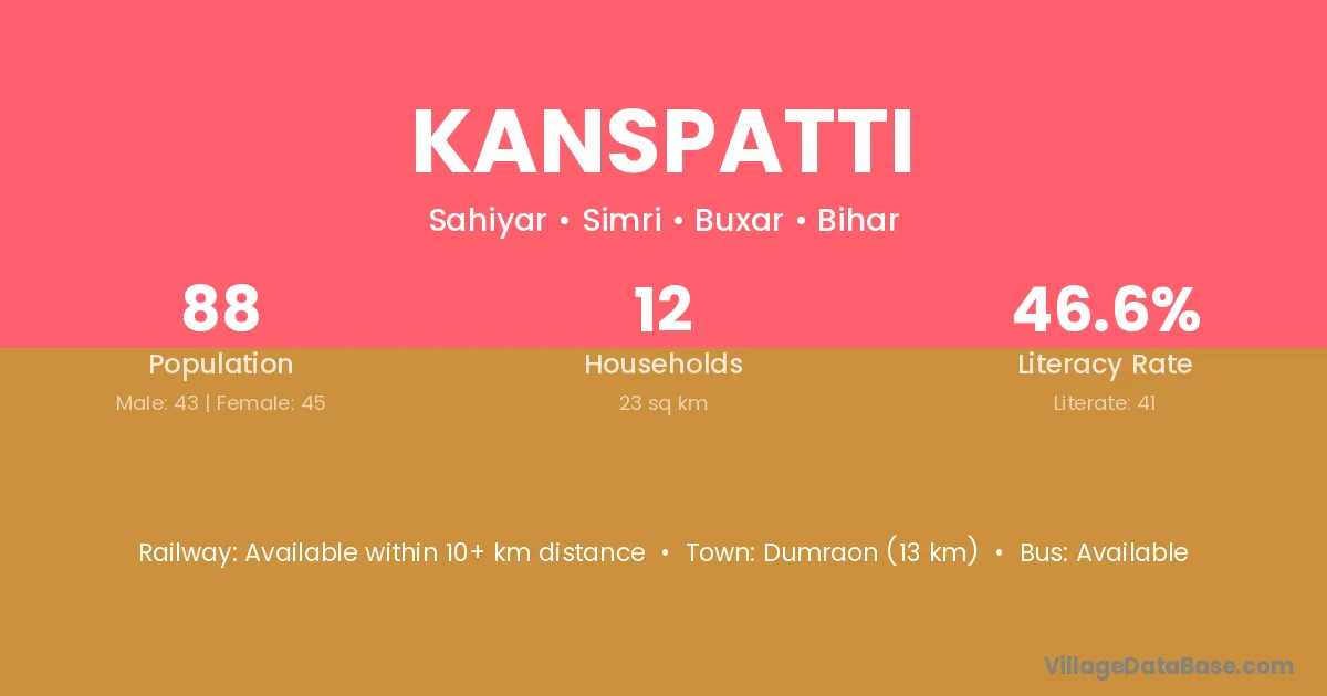 Dumraon (13 km) is the nearest town to Kanspatti village for major economic activities and is located approximately 13 km away.