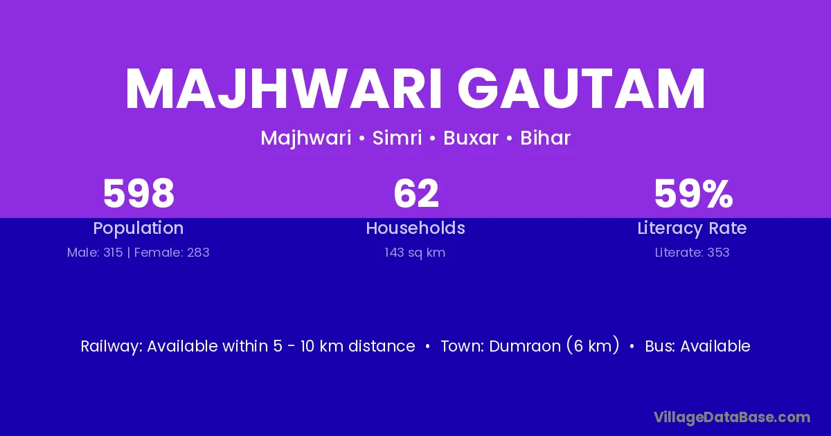 Dumraon (6 km) is the nearest town to Majhwari Gautam village for major economic activities and is located approximately 6 km away.