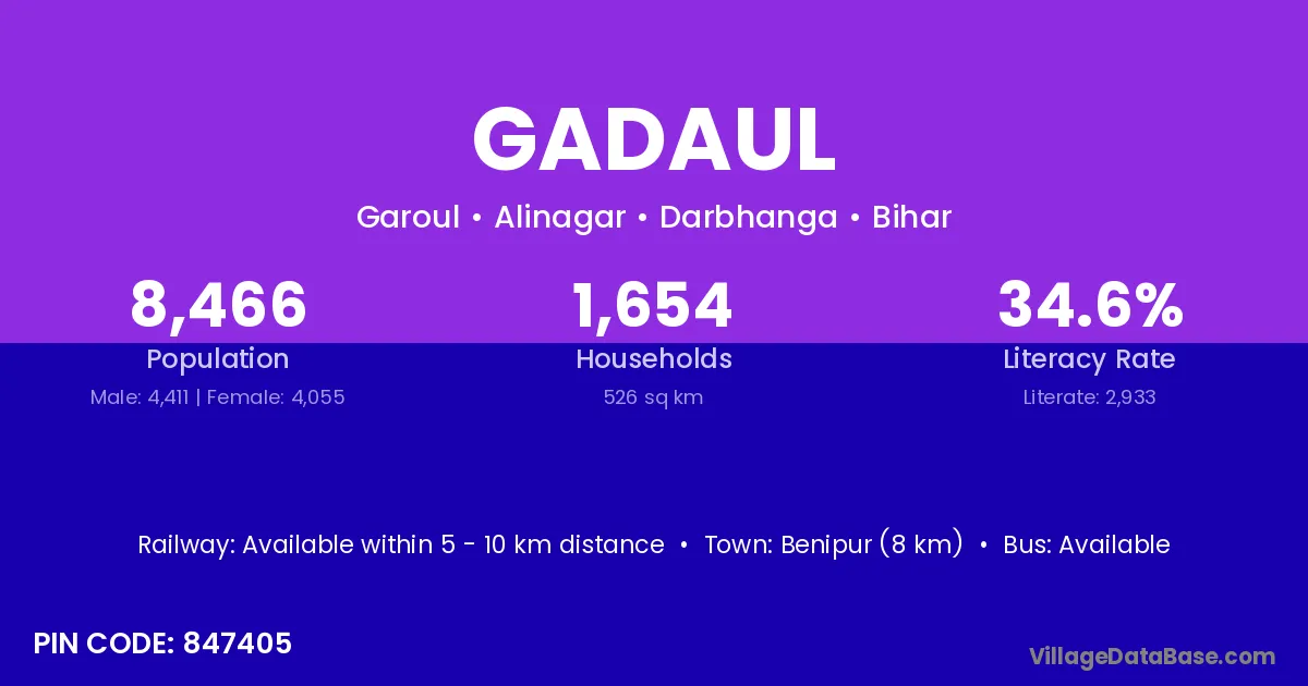 Benipur (8 km) is the nearest town to Gadaul village for major economic activities and is located approximately 8 km away.