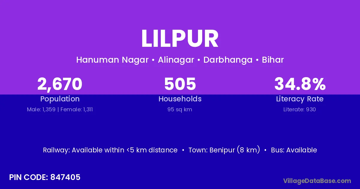 Benipur (8 km) is the nearest town to Lilpur village for major economic activities and is located approximately 8 km away.