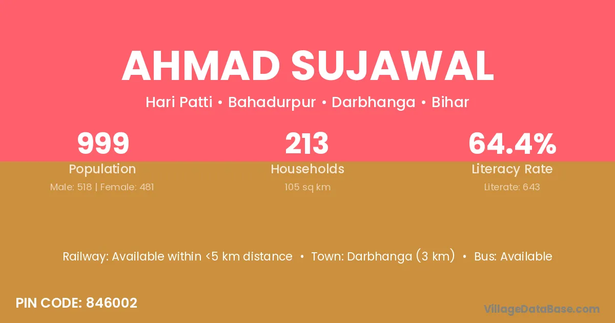 Darbhanga (3 km) is the nearest town to Ahmad Sujawal village for major economic activities and is located approximately 3 km away.