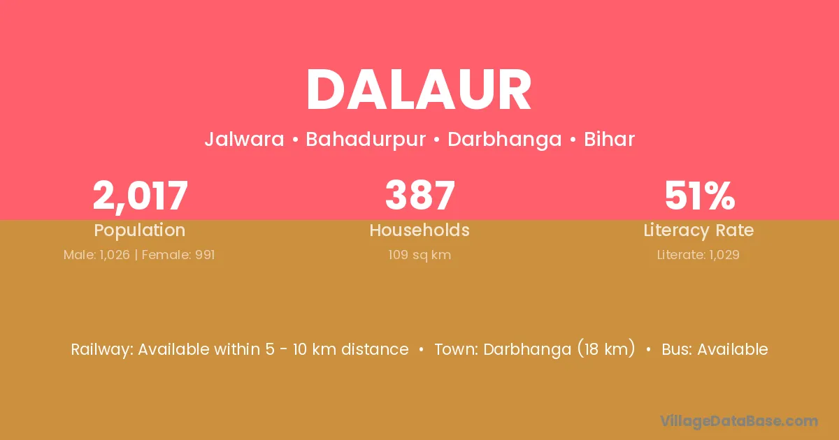 Darbhanga (18 km) is the nearest town to Dalaur village for major economic activities and is located approximately 18 km away.