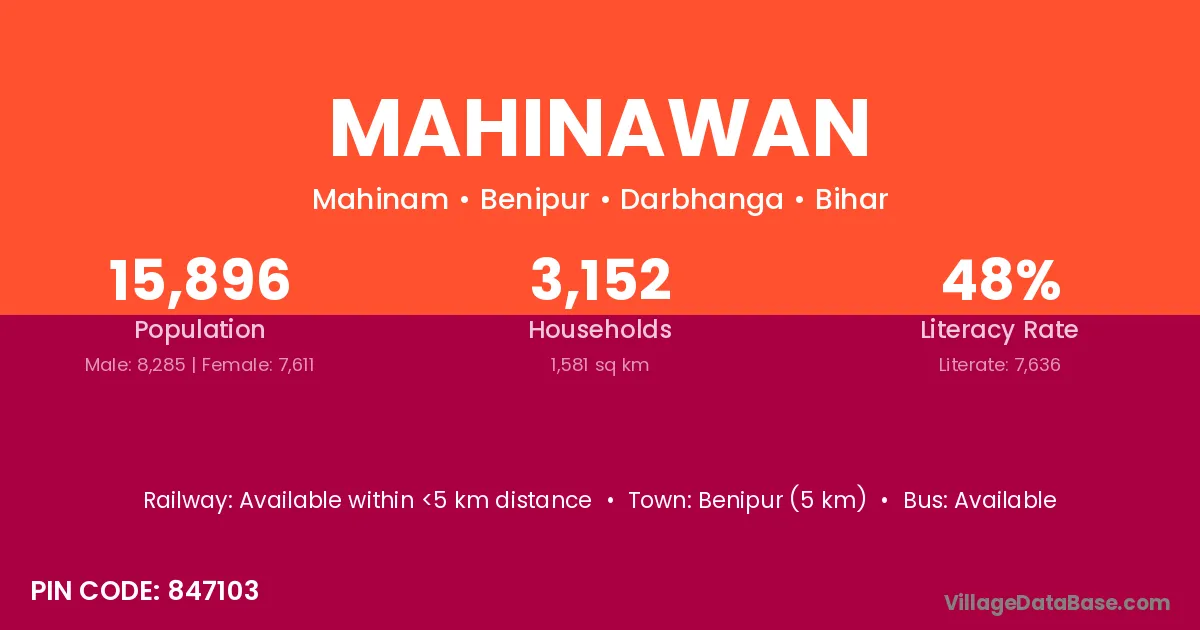 Benipur (5 km) is the nearest town to Mahinawan village for major economic activities and is located approximately 5 km away.