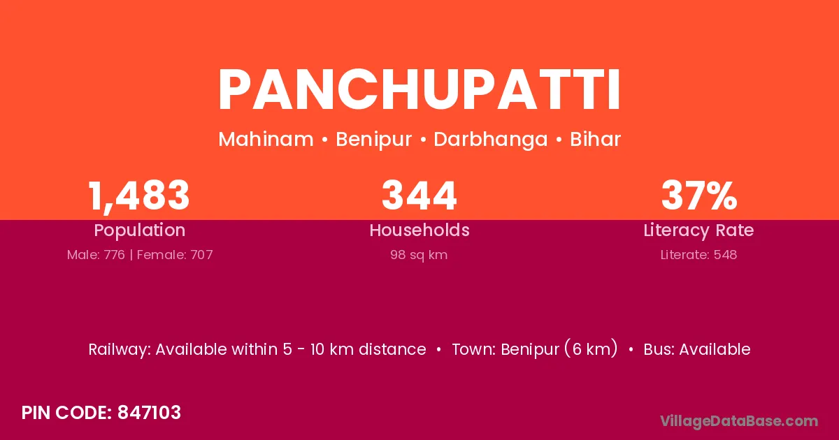 Benipur (6 km) is the nearest town to Panchupatti village for major economic activities and is located approximately 6 km away.