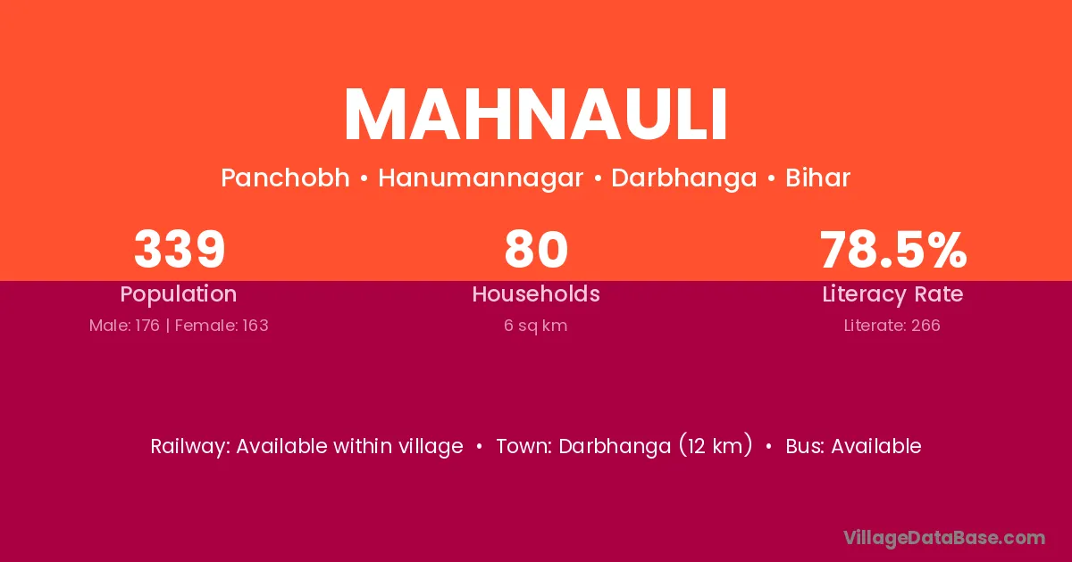 Darbhanga (12 km) is the nearest town to Mahnauli village for major economic activities and is located approximately 12 km away.