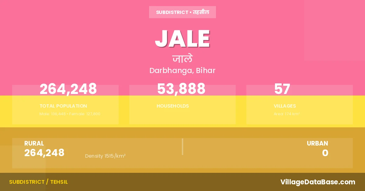 Jale is a town and Subdivision in the Darbhanga district of the Bihar. In India, a Subdivision is a subdivision of a district responsible for the administration and revenue collection of a specific area within the district. Subdivisions play a crucial role in the local governance structure, contributing significantly to the development and administration of their communities.
