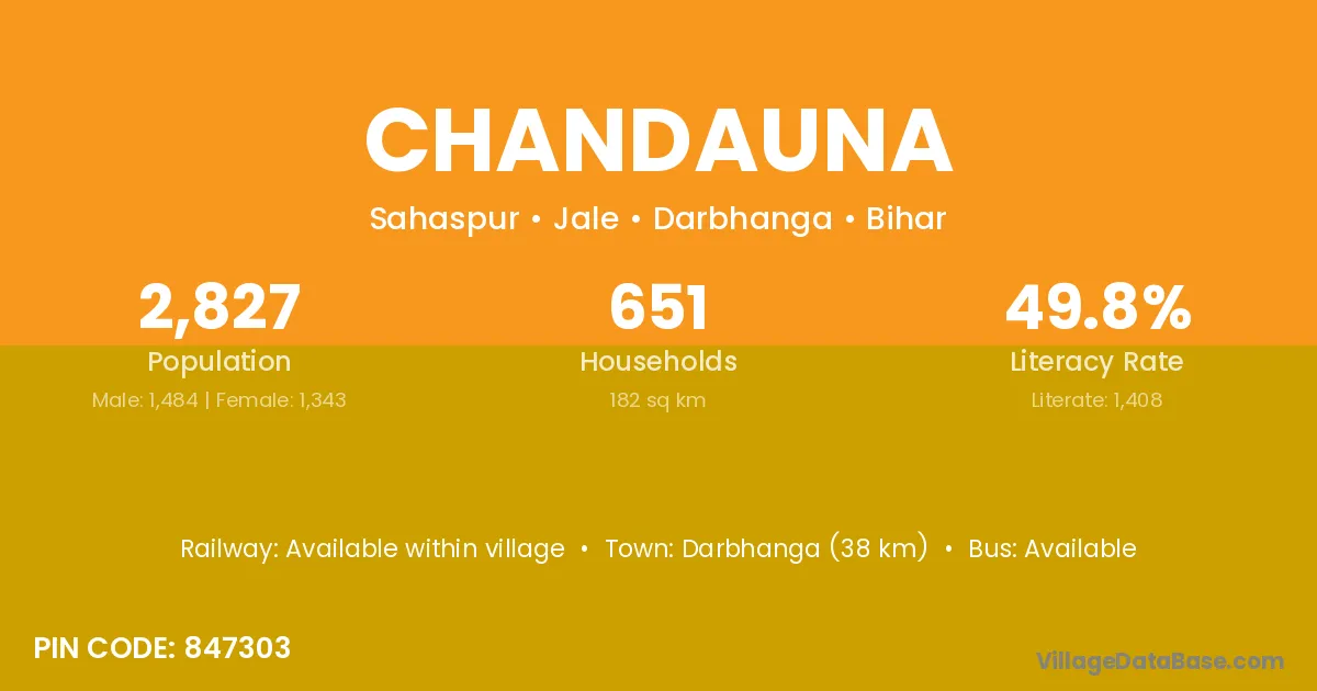 Darbhanga (38 km) is the nearest town to Chandauna village for major economic activities and is located approximately 38 km away.