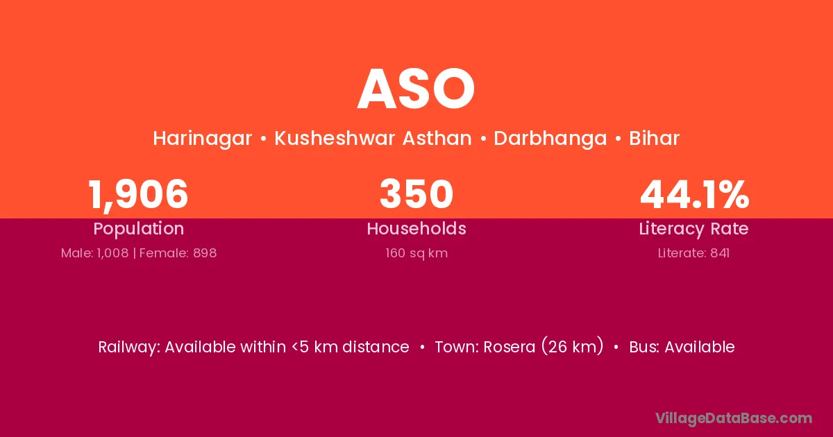 Aso village is located in the Kusheshwar Asthan Subdivision of the Darbhanga district in Bihar .