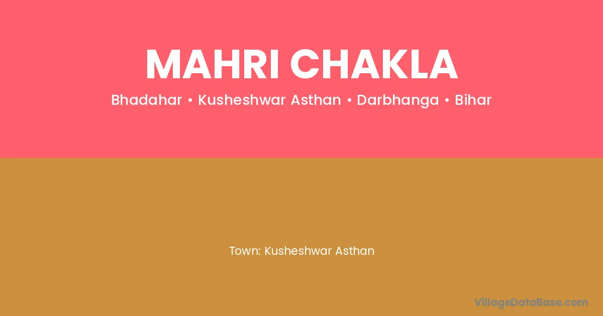 Kusheshwar Asthan is the nearest town to Mahri Chakla village for major economic activities