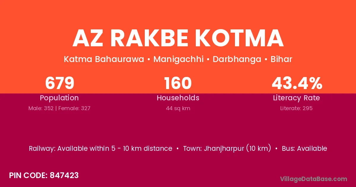 Az Rakbe Kotma village has a total population of 679 people, of which 352 are males and 327 are females.