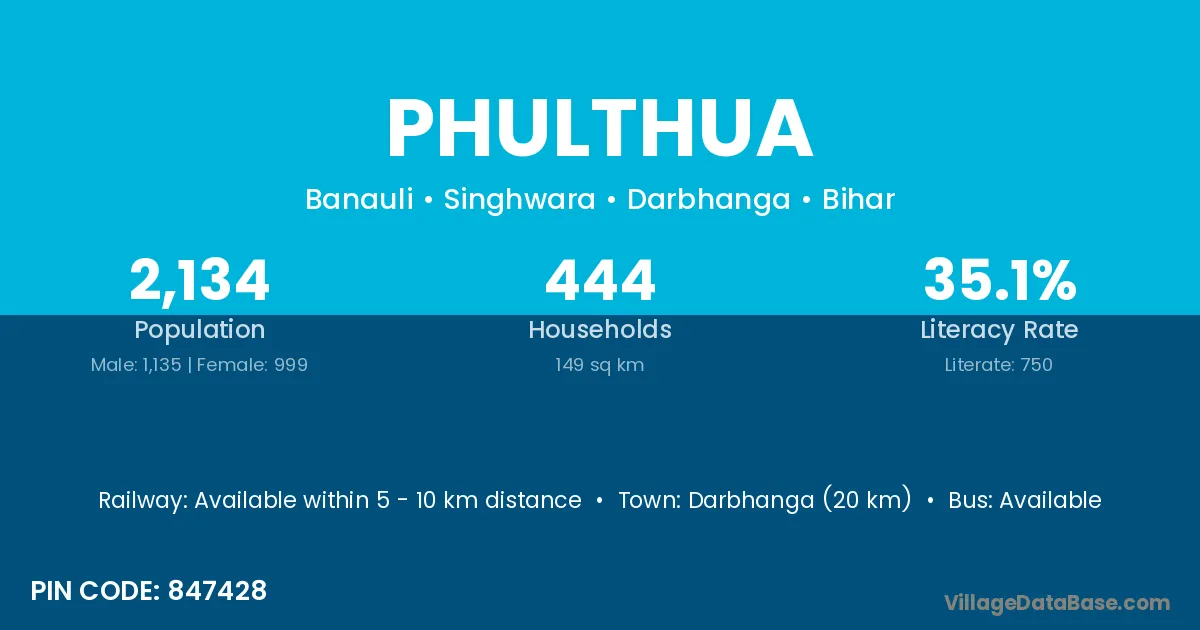 Darbhanga (20 km) is the nearest town to Phulthua village for major economic activities and is located approximately 20 km away.