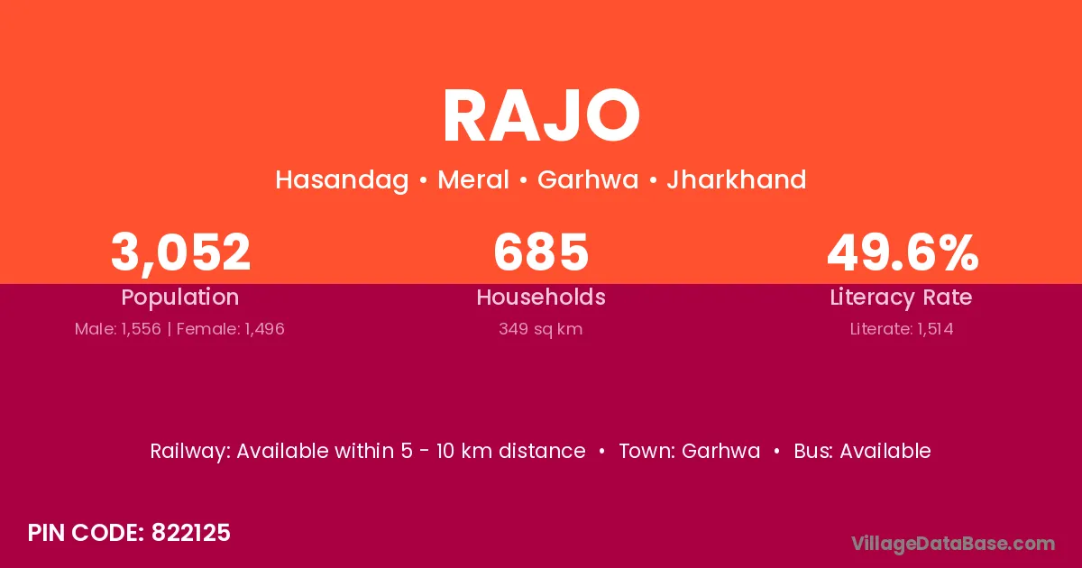 Darbhanga (40 km) is the nearest town to Rajo village for major economic activities and is located approximately 40 km away.