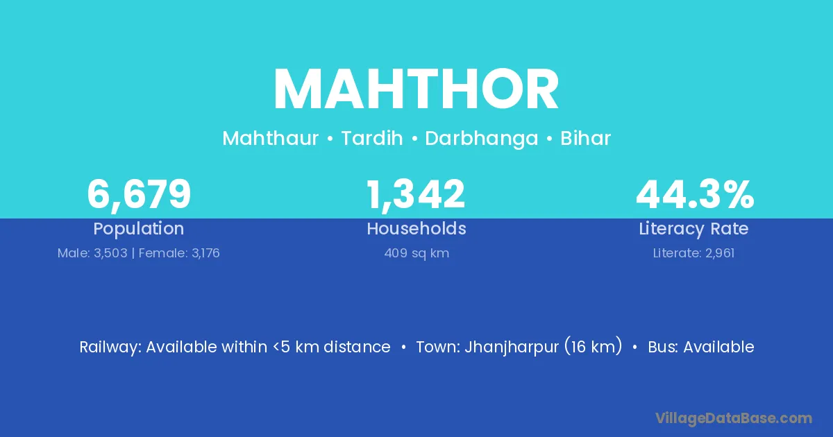 Jhanjharpur (16 km) is the nearest town to Mahthor village for major economic activities and is located approximately 16 km away.