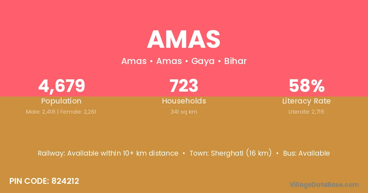 Sherghati (16 km) is the nearest town to Amas village for major economic activities and is located approximately 16 km away.