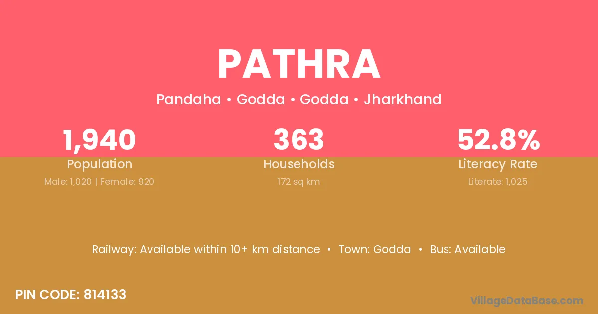 Sherghati (16 km) is the nearest town to Pathra village for major economic activities and is located approximately 16 km away.