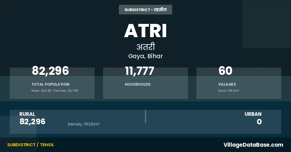 Atri is a town and Subdivision in the Gaya district of the Bihar. In India, a Subdivision is a subdivision of a district responsible for the administration and revenue collection of a specific area within the district. Subdivisions play a crucial role in the local governance structure, contributing significantly to the development and administration of their communities.